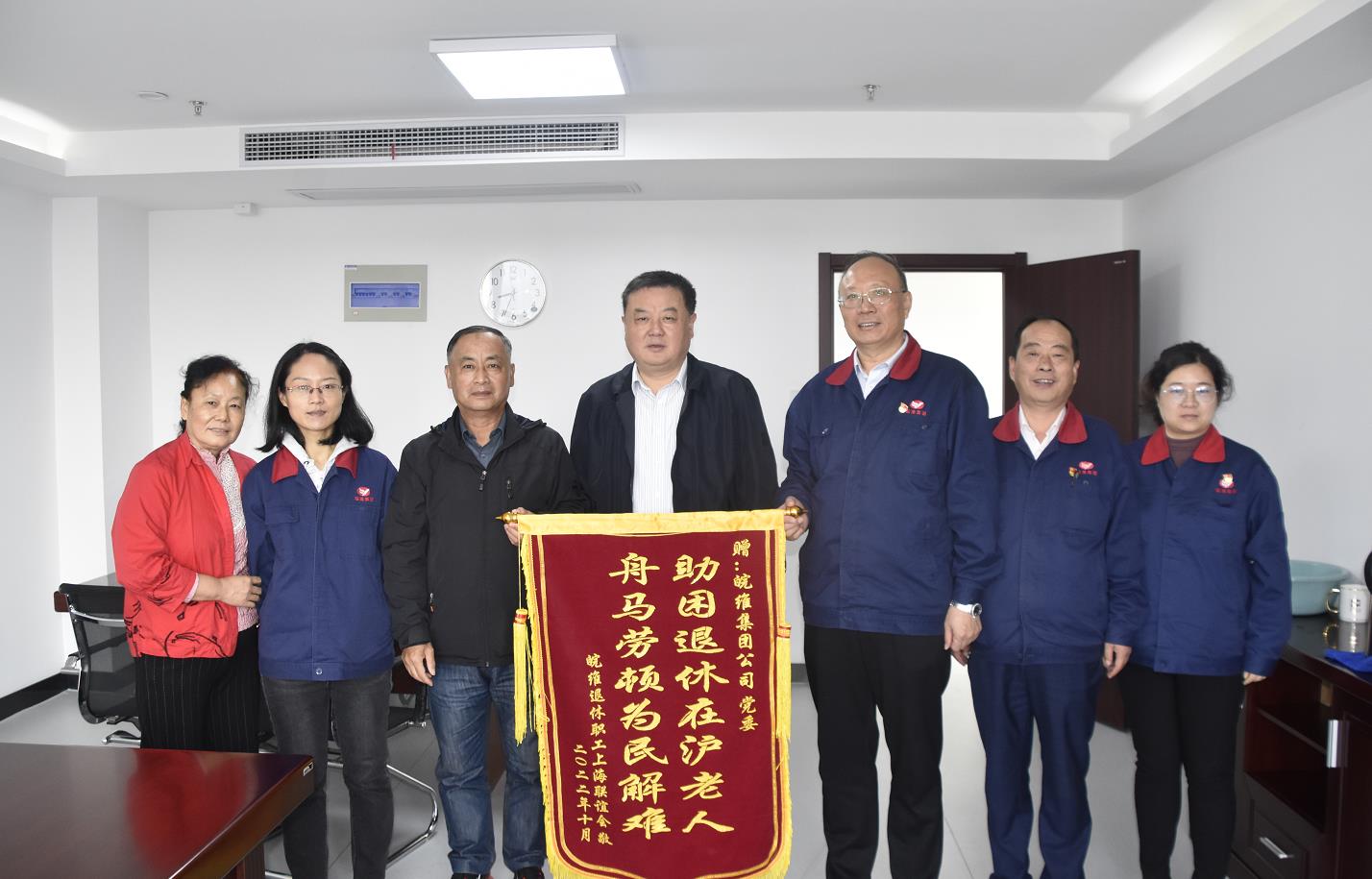 “感謝公司黨委,關(guān)心我們遠(yuǎn)在上海的退休老職工,幫助我們解決了實(shí)際困難?!比涨?,兩名上海退休老職工來到了集團(tuán)公司黨委書記、董事長吳福勝的辦公室中,獻(xiàn)上一面寫有“助困退休在滬老人,舟馬勞頓為民解難”的錦旗,向公司黨委及相關(guān)部門負(fù)責(zé)人表達(dá)了真摯的感謝。