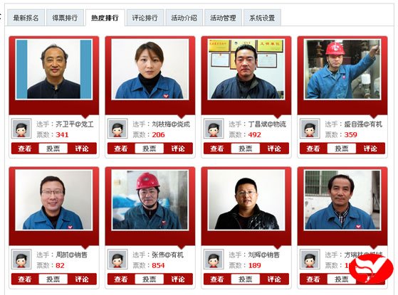 在昨天的得票前八強中,有機分廠張偉繼續(xù)跑,同時出現(xiàn)熱電分廠楊輝的身影;在人氣排行中,黨工部齊衛(wèi)平保持先,機械設(shè)備公司方瑞林擠進前八強。